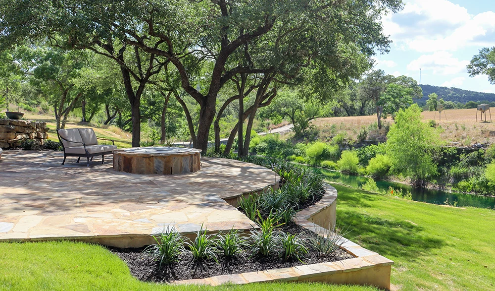 - Erected a raised, custom-flagstone patio that seamlessly integrates a planter bed, culminating in an infinity-style edge for a stunning vista.
